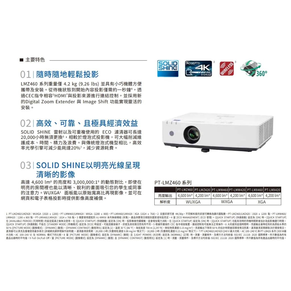 Panasonic PT-LMZ460T (4600流明) WUXGA 3LCD雷射投影機